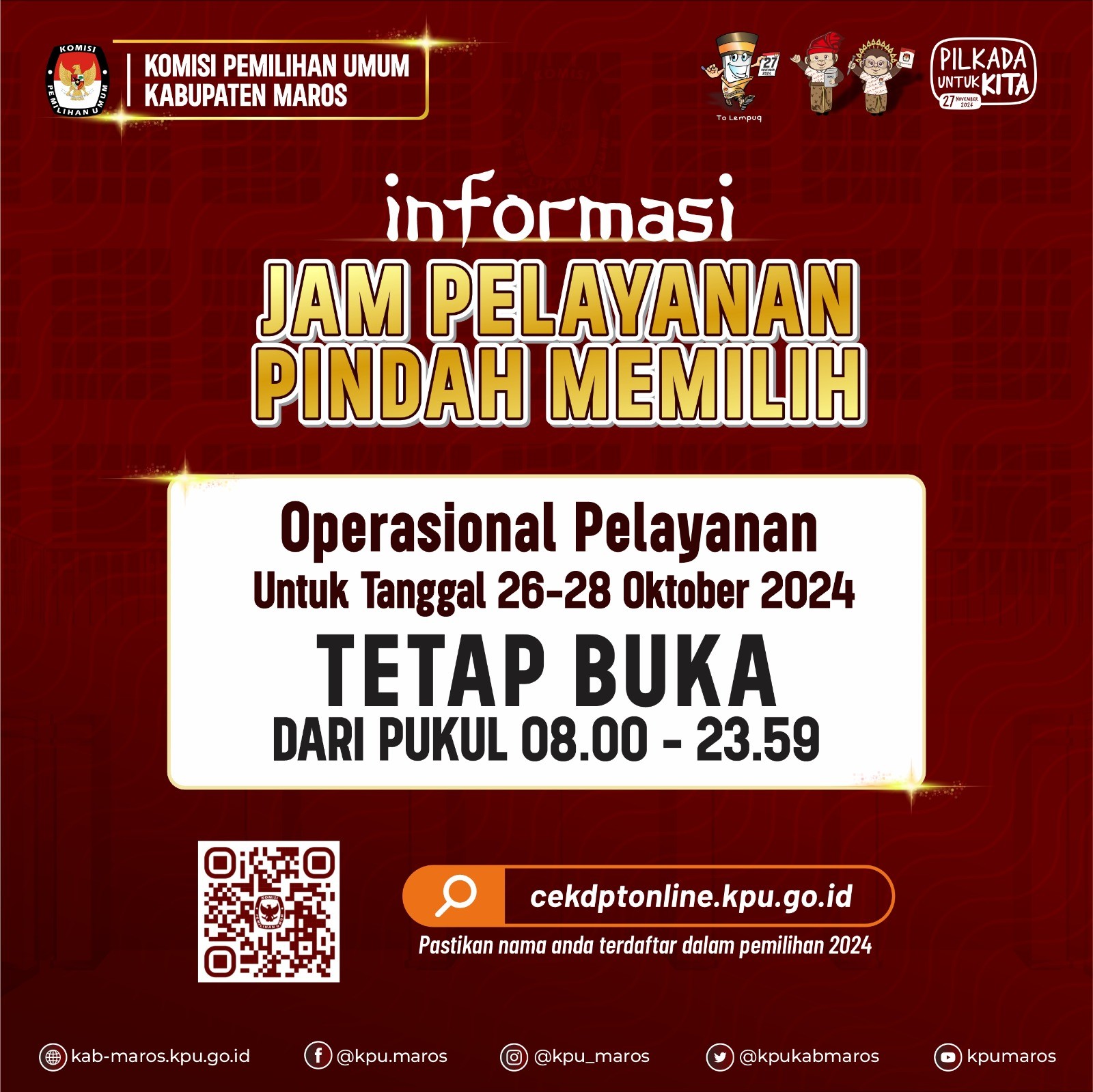 Masyarakat diimbau untuk aktif melaporkan perubahan data seperti pemilih baru, pemilih meninggal dunia, atau pindah domisili. Posko ini terbuka setiap hari kerja di kantor KPU Kabupaten Maros Jalan Asoka No. 3 Keluraran Pettuadae Kecamatan Turikale.