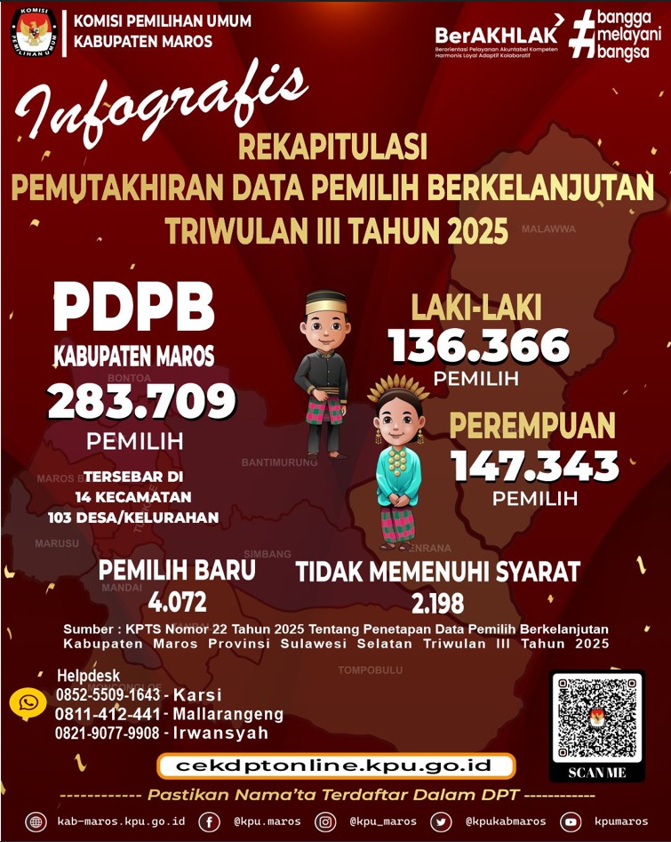 Keterangan Gambar : Infografis Rekapitulasi Pemutakhiran Data Pemilih Berkelanjutan Kabupaten Maros Provinsi Sulawesi Selatan Triwulan III Tahun 2025