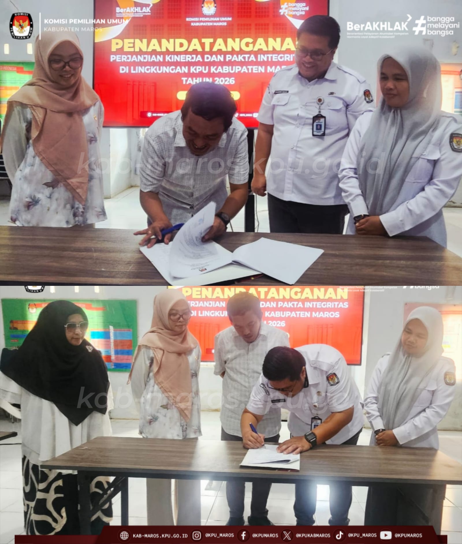 Keterangan Gambar : Prosesi penandatanganan Perjanjian Kinerja oleh Ketua KPU Kabupaten Maros, Jumaedi, & Sekretaris KPU kabupaen Maros, H.Muhammad Anshari sebagai bentuk komitmen dalam mewujudkan tata kelola pemerintahan yang transparan dan akuntabel.Prosesi penandatanganan Perjanjian Kinerja oleh Ketua KPU Kabupaten Maros, Jumaedi, sebagai bentuk komitmen dalam mewujudkan tata kelola pemerintahan yang transparan dan akuntabel.