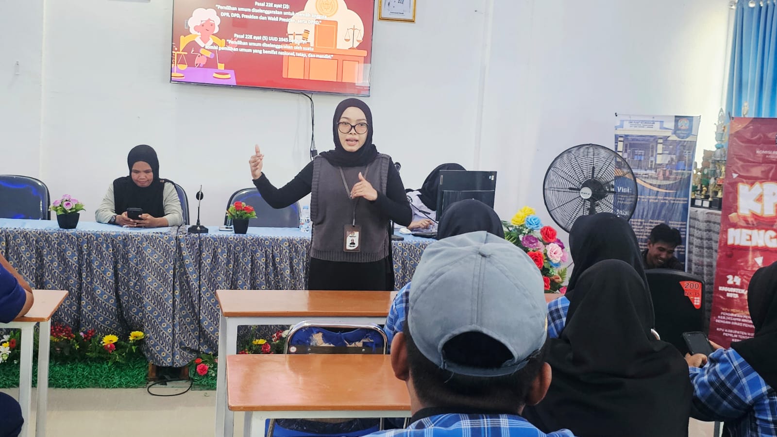 "Kami ingin adik-adik mengenal apa itu pemilu lebih awal. Selain itu, kami di KPU Maros terus melakukan pemutakhiran data. Jadi, buat kalian yang sudah genap 17 tahun dan sudah punya KTP elektronik, otomatis kalian sudah terdaftar sebagai pemilih," jelas Karsi.