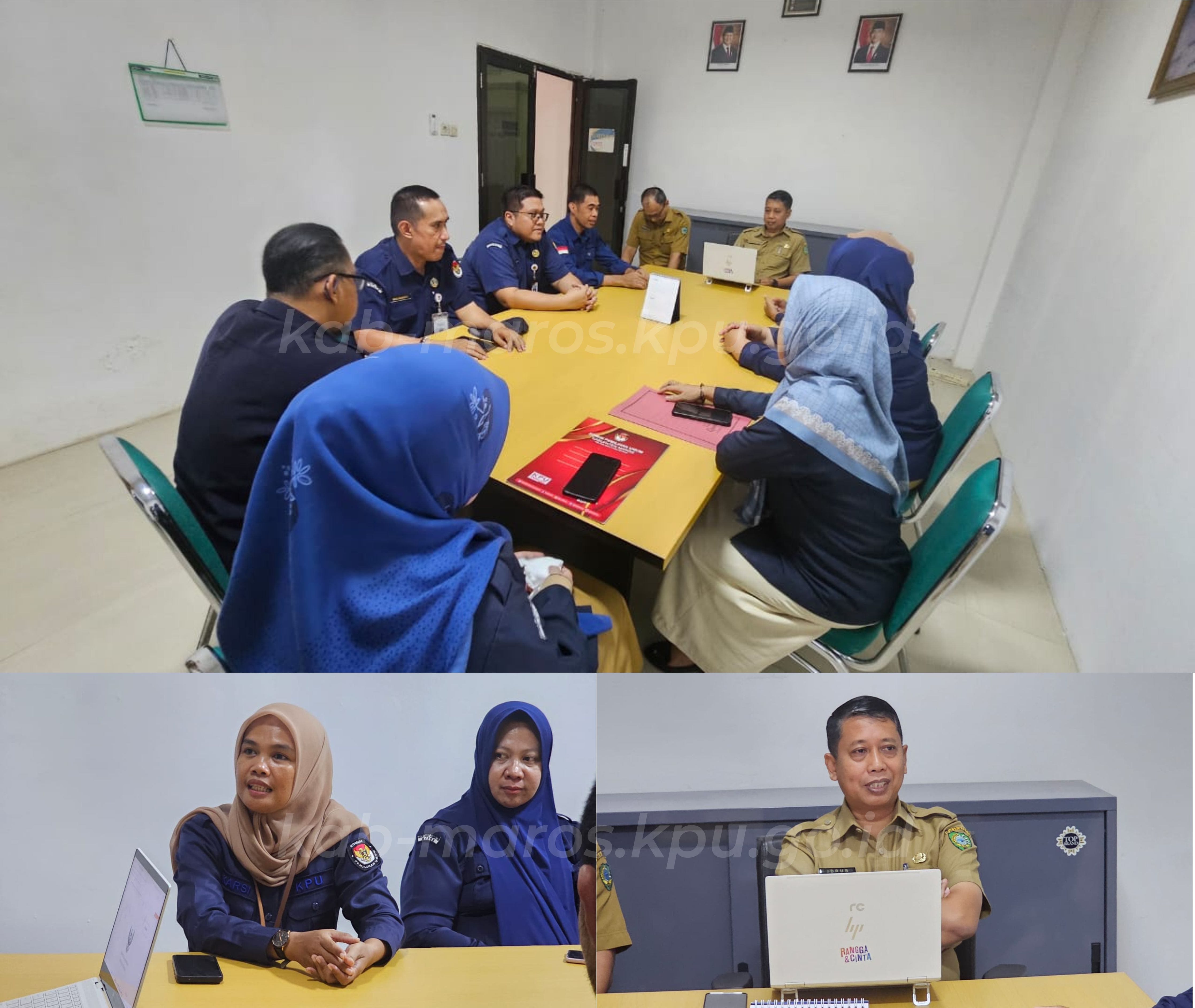 Rombongan yang dipimpin oleh Anggota KPU Maros, Muhammad Salman dan Karsi, bersama Sekretaris KPU H. Muhammad Anshari, disambut hangat oleh Kepala Dinas PMD Maros, Drs. Idrus, M.Si.