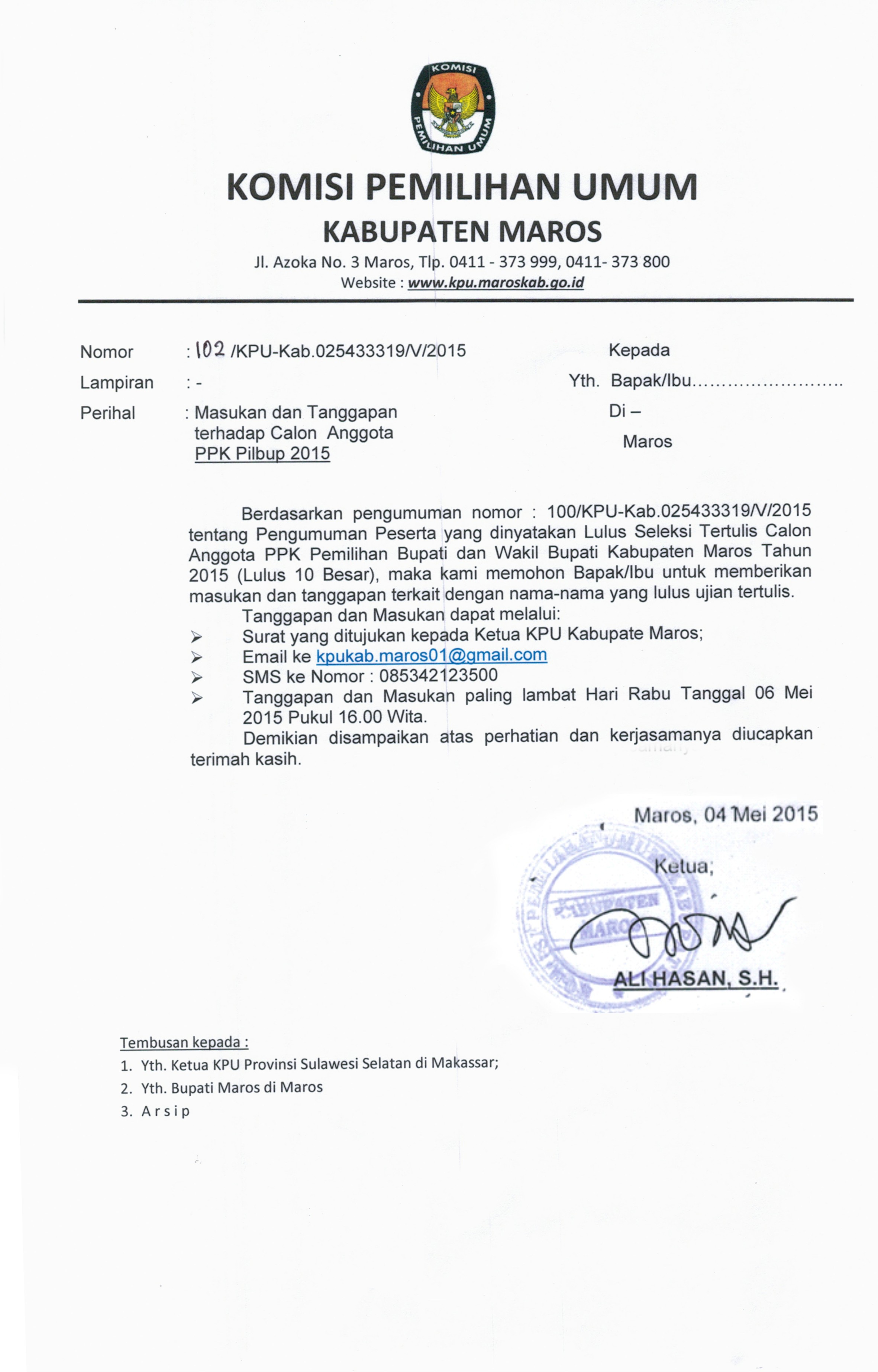Masukan dan Tanggapan Terhadap Calon Anggota PPK Pilbup 2015