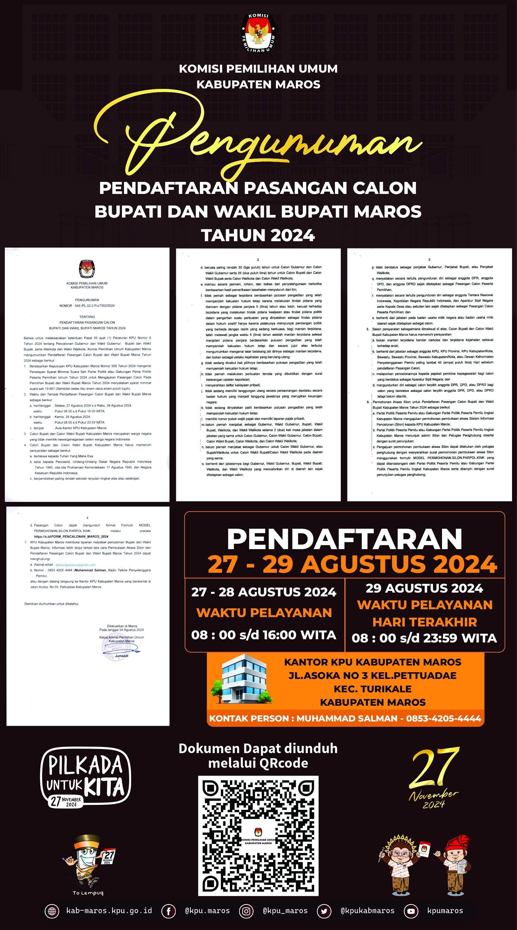 PENGUMUMAN PENDAFTARAN PASANGAN CALON BUPATI DAN WAKIL BUPATI MAROS TAHUN 2024
