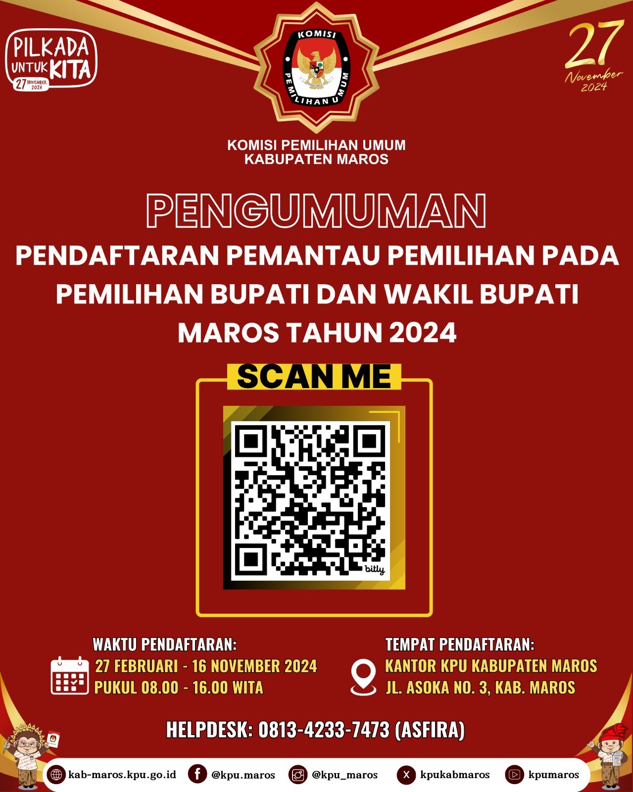 PENGUMUMAN PENDAFTARAN PEMANTAU PEMILIHAN PADA PEMILIHAN BUPATI MAROS TAHUN 2024