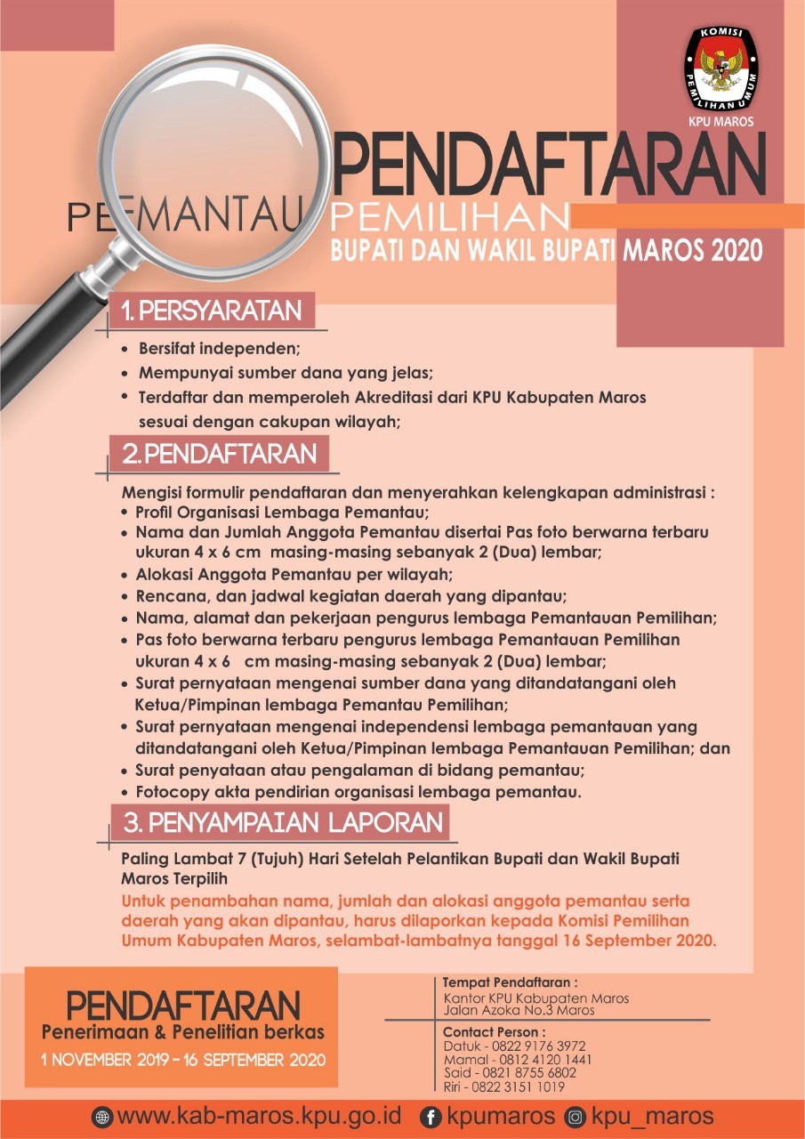 Disampaikan Bagi Warga Maros, Yang Ingin Terlibat Dalam Mengawal Demokrasi pada Pemilihan Bupati & Wakil Bupati Maros Tahun 2020 ayo persiapkan diri anda .