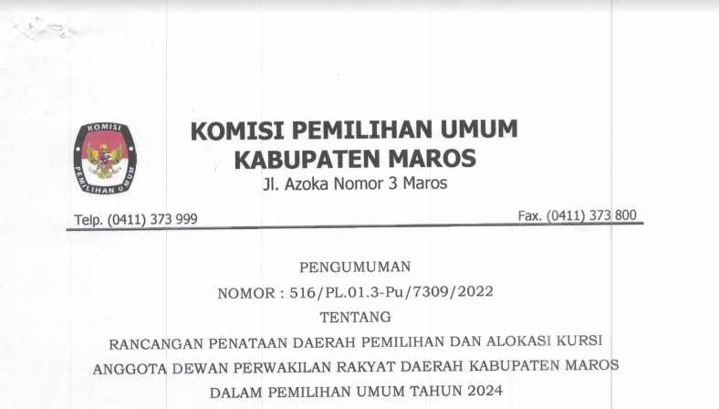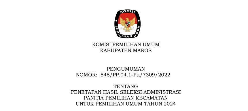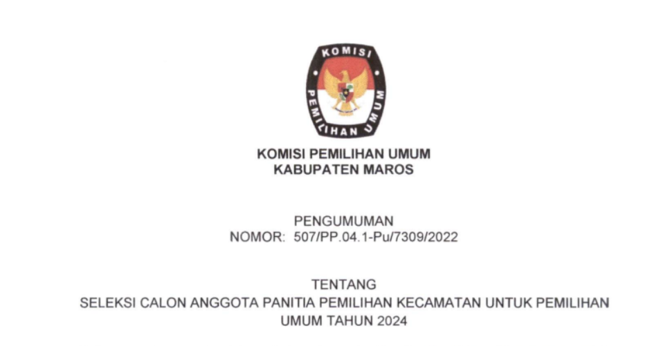 Maros, KPU Kabupaten Maros –Dalam rangka pembentukan Calon Anggota Panitia Pemilihan Kecamatan untuk Pemilihan Umum, Komisi Pemilihan Umum Kabupaten Maros mengundang Warga Negara Indoensia yang memenuhi kualifikasi untuk mendaftarkan diri menjadi anggota Panitia Pemiihan Kecamatan, untuk Pemilihan Umu dengan ketentuan sebagai berikut :