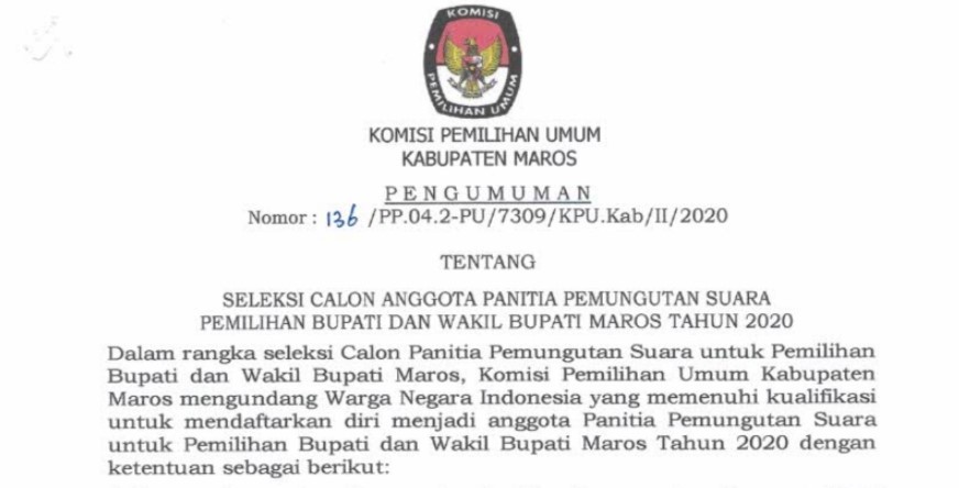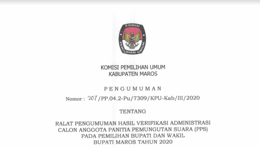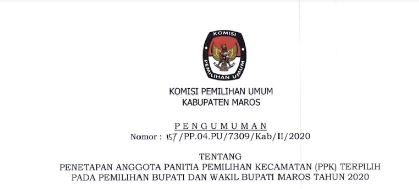 [2. ]Pelantikan anggota PPK terpilih dirangkaikan dengan launching Maskot dan Jingle Pemilihan Bupati dan Wakil Bupati Maros Tahun 2020. 3. Panitia Pemilihan Kecamatan Terpilih (PPK) diharapkan hadir 15 (lima Belas) menit sebelum acara dimulai dan mengikut sertakan pendamping.