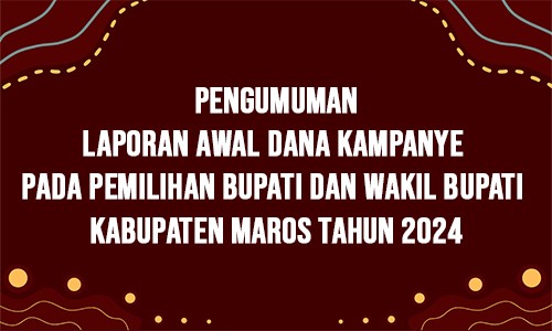 Maros, kab-maros.kpu.go.id - Komisi Pemilihan Umum (KPU) kabupaten Maros mengumumkanLaporan Awal Dana Kampanye Pada Pemilihan Bupati Dan Wakil Bupati Kabupaten Maros Tahun 2024.