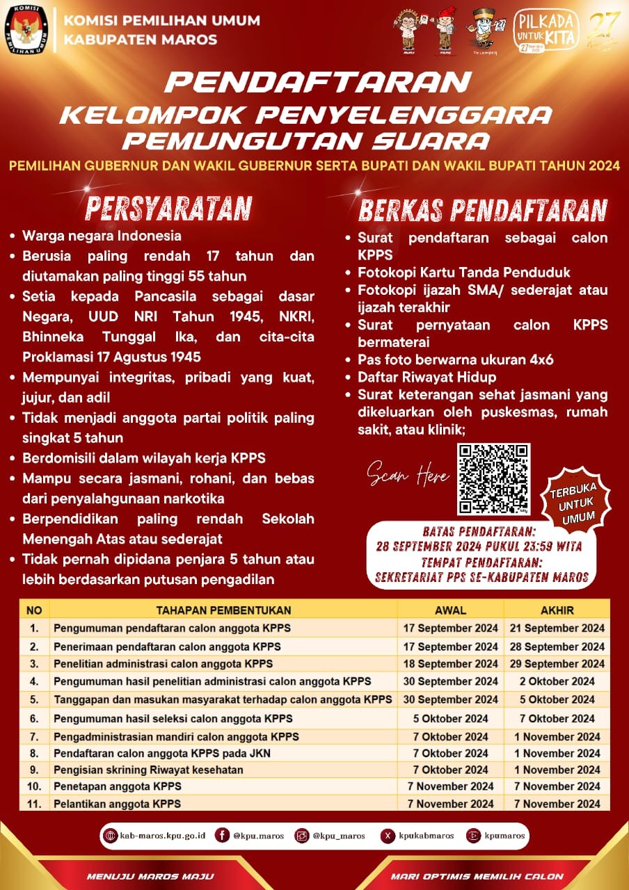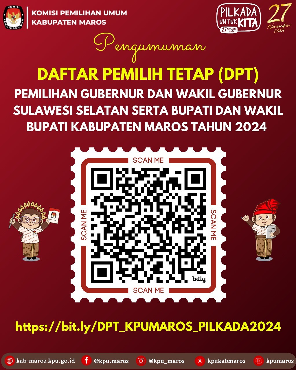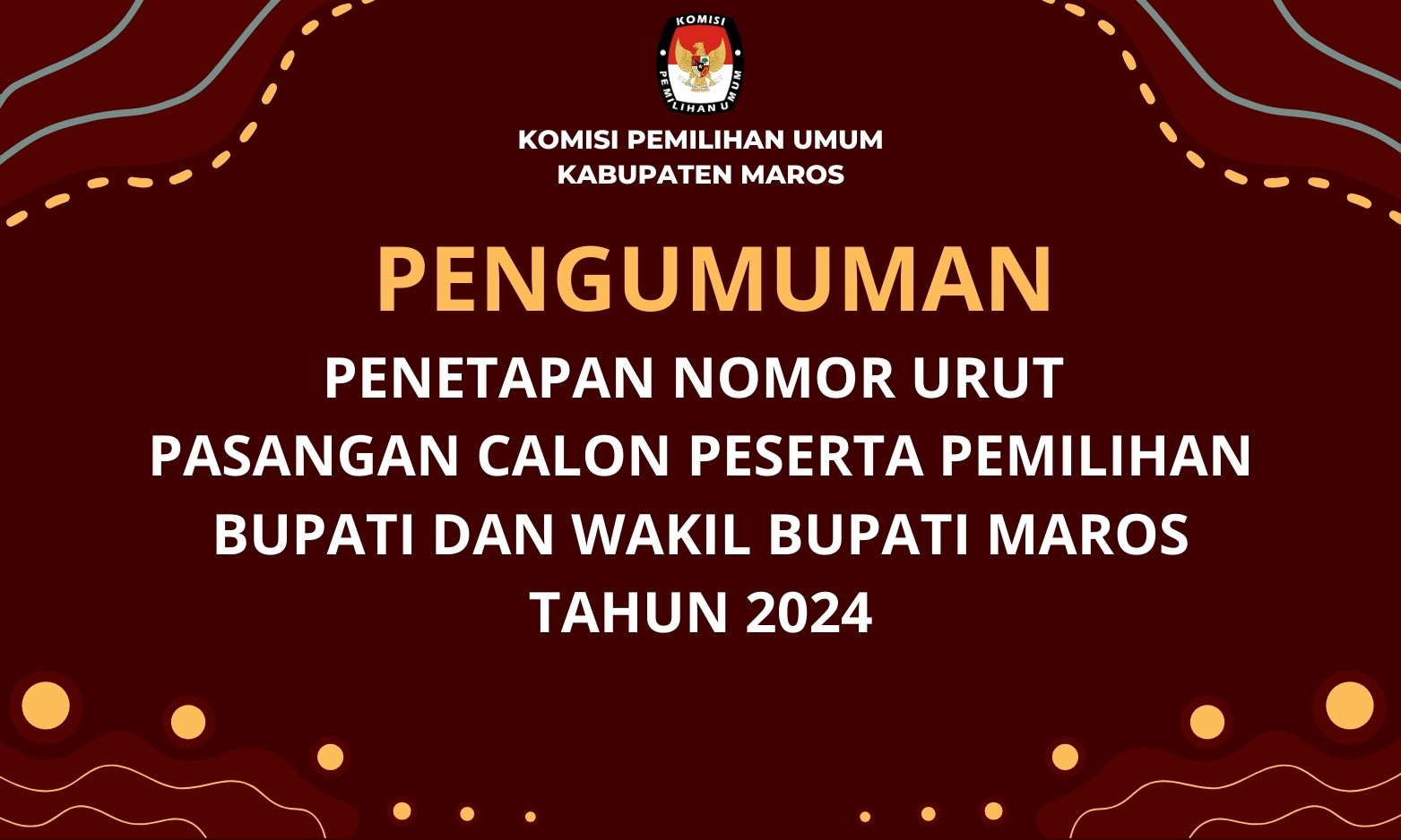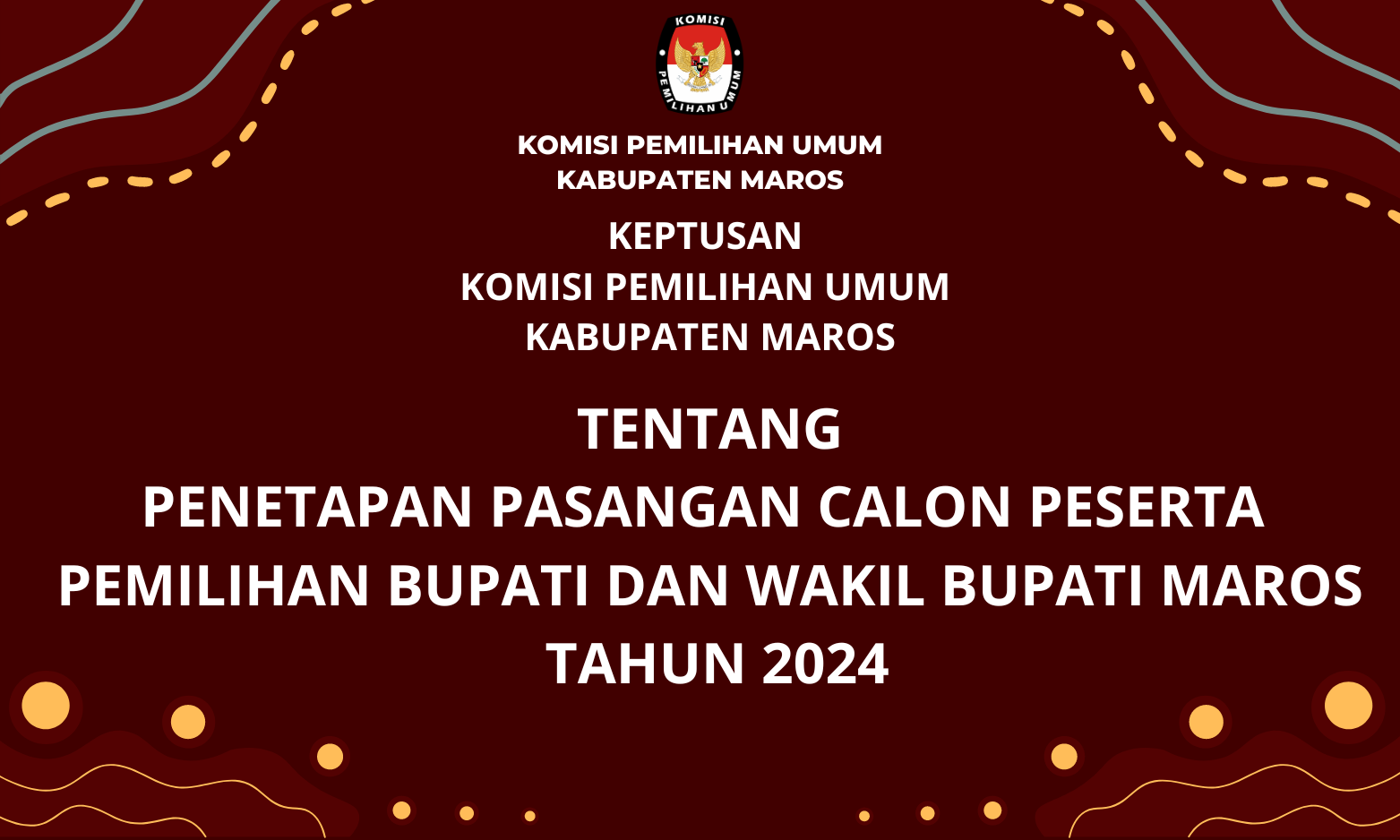 Bahwa berdasarkan ketentuan Pasal 13 ayat(1) huruf d angka 4, Peraturan Komisi Pemilihan Umum Nomor 8 Tahun 2024 tentang Pencalonan Gubernur dan Wakil Gubernur, Bupati dan Wakil Bupati serta Walikota dan Wakil Walikota yang telah diubah dengan Peraturan Komisi Pemilihan Umum Nomor 10 Tahun 2024 tentang Perubahan Atas Peraturan Komisi Pemilihan Umum Nomor 8 Tahun 2024 tentang Pencalonan Gubernur dan Wakil Gubernur, Bupati dan Wakil Bupati serta Walikota dan Wakil Walikota, mengatur dokumen persyaratan pencalonan oleh Partai Politik Peserta Pemilu atau Gabungan Partai Politik Peserta Pemilu berupa naskah Visi, Misi dan Program Pasangan Calon telah sesuai dengan rencana pembangunan jangka panjang daerah (RPJPD), maka dalam rangka mewujudkan keterbukaan informasi publik serta mendorong partisipasi masyarakat dalam tahapan pencalonan pada Pemilihan Bupati dan Wakil Bupati Maros Tahun 2024, KPU Kabupaten Maros mengumumkan penerimaan Masukan dan Tanggapan Masyarakat terhadap Naskah Visi, Misi dan Program Pasangan Calon Bupati dan Wakil Bupati Maros sebagai berikut: