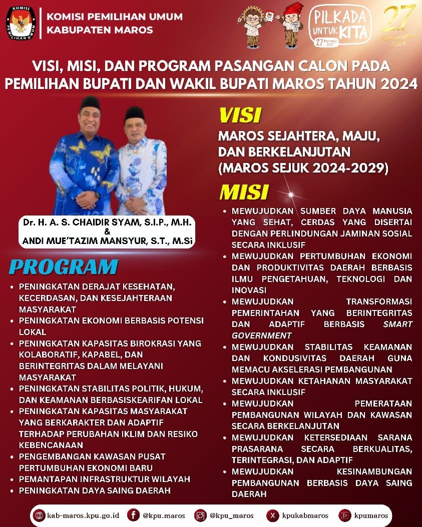 Maros-kab-maros.kpu.go.id, Komisi Pemilihan Umum mengumumkan Naskah Visi,Misi dan Program Pasangan calon Bupati dan wakil Bupati Maros tahun 2024,